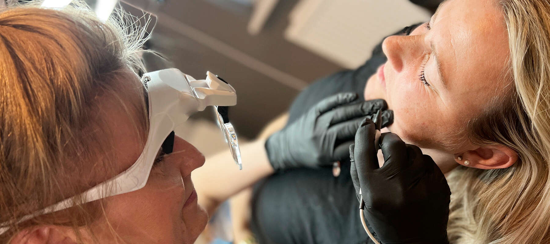 Vi behandler kun små områder med enkelte hår i 20 min. og ca. 10 til 15 hårstrå ad gangen. Behandlingen foregår ved, at en meget fin nål bliver ført ind i hårsækken. Når nålen er ved hårrodden, sender nålen lidt strøm, som destruerer hårrodden.